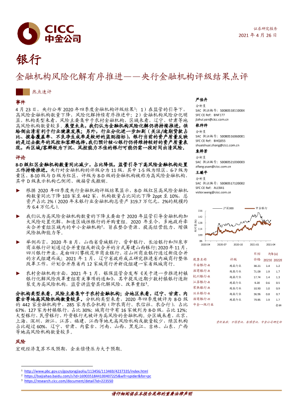 【中金公司】【20210426】银行业央行金融机构评级结果点评:金融机构风险化解有序推进-6页