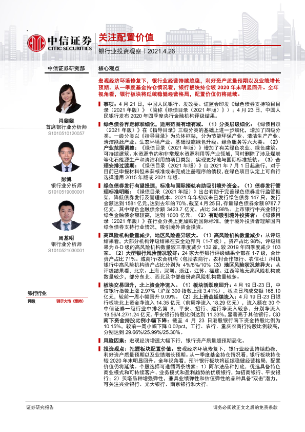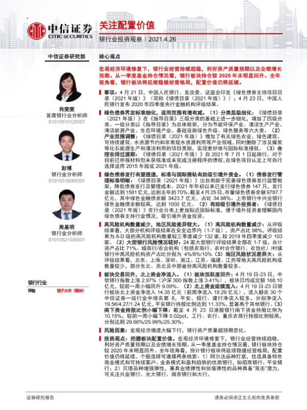 【中信证券】【20210426】银行业投资观察:关注配置价值-11页