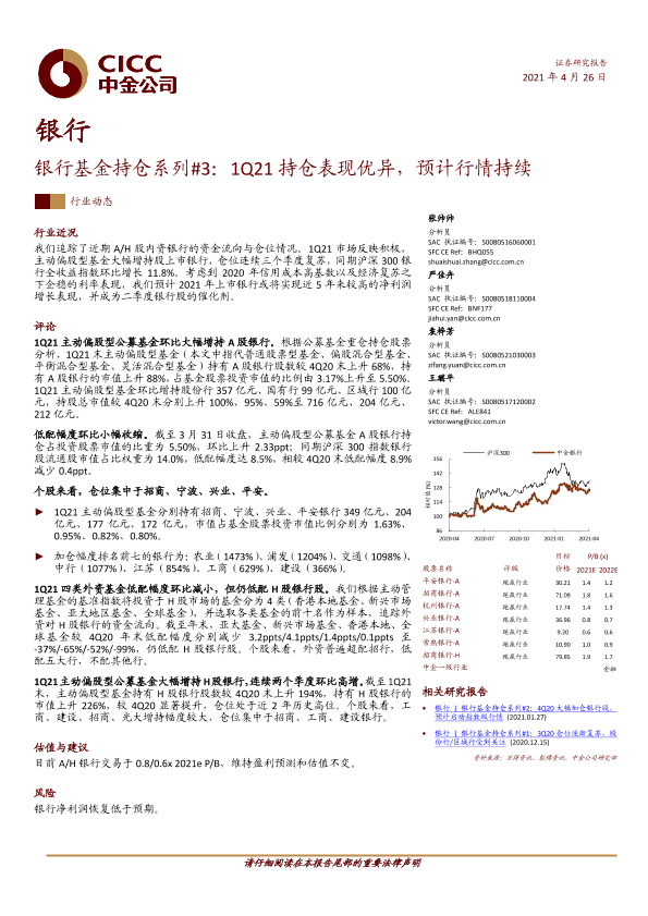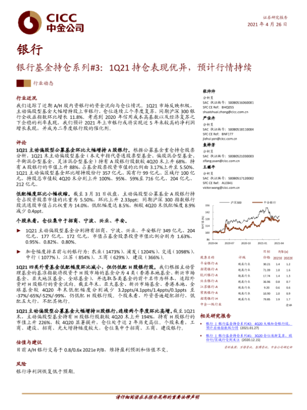 【中金公司】【20210426】银行基金持仓系列#3:1Q21持仓表现优异,预计行情持续-12页