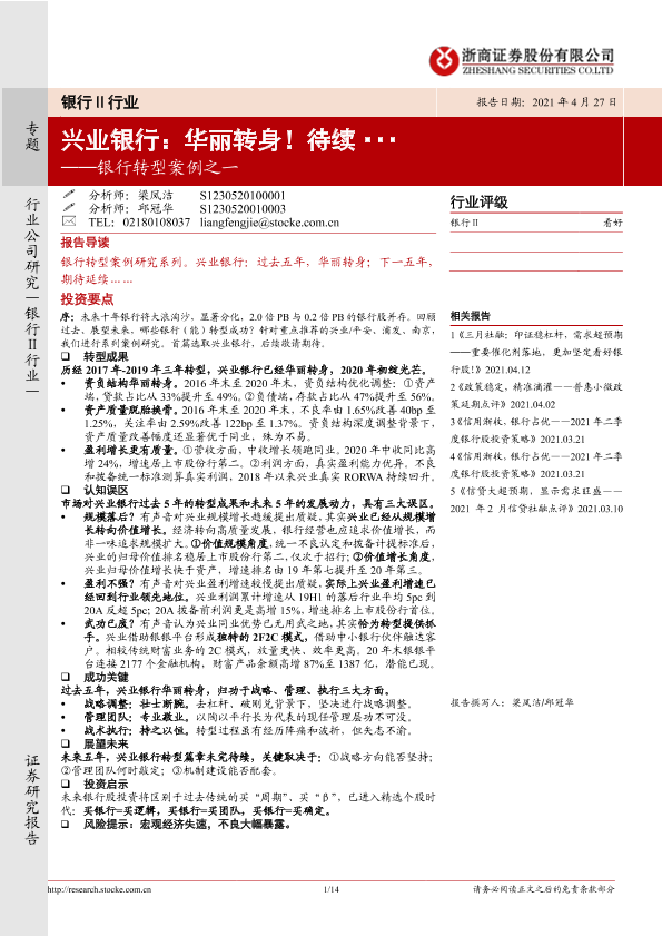 【浙商证券】【20210427】兴业银行:华丽转身!待续···-14页