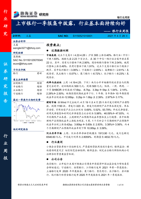 【渤海证券】【20210428】上市银行一季报集中披露,行业基本面持续向好-18页