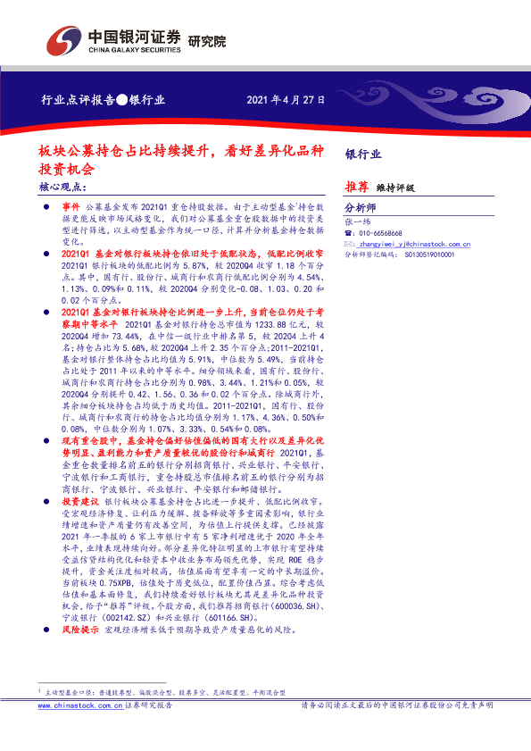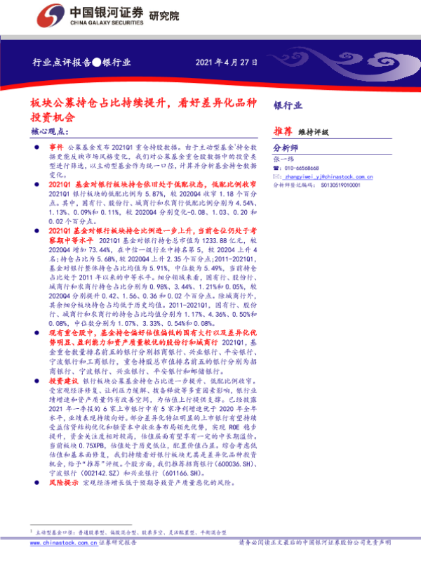 【银河证券】【20210427】板块公募持仓占比持续提升,看好差异化品种投资机会-6页