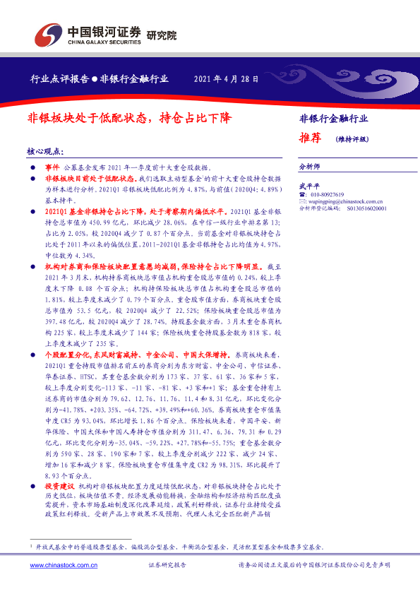 【银河证券】【20210428】非银板块处于低配状态,持仓占比下降-6页