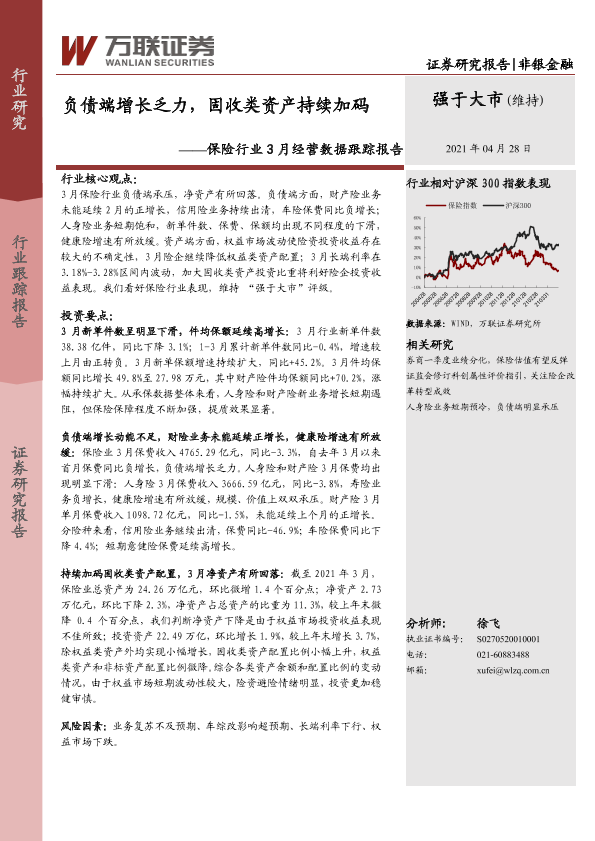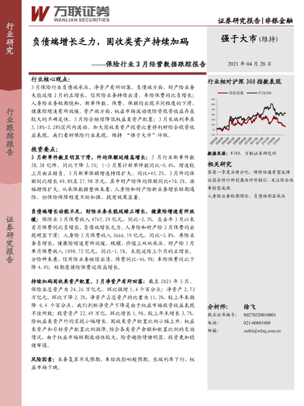 【万联证券】【20210428】保险行业3月经营数据跟踪报告:负债端增长乏力,固收类资产持续加码-10页