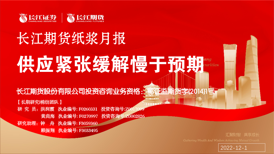 【长江期货】【20221201】纸浆月报:供应紧张缓解慢于预期-22页