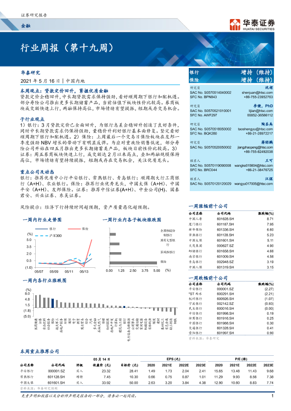 【华泰证券】【20210516】金融行业周报(第十九周)-26页