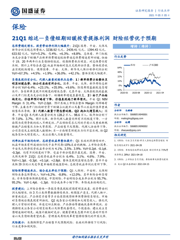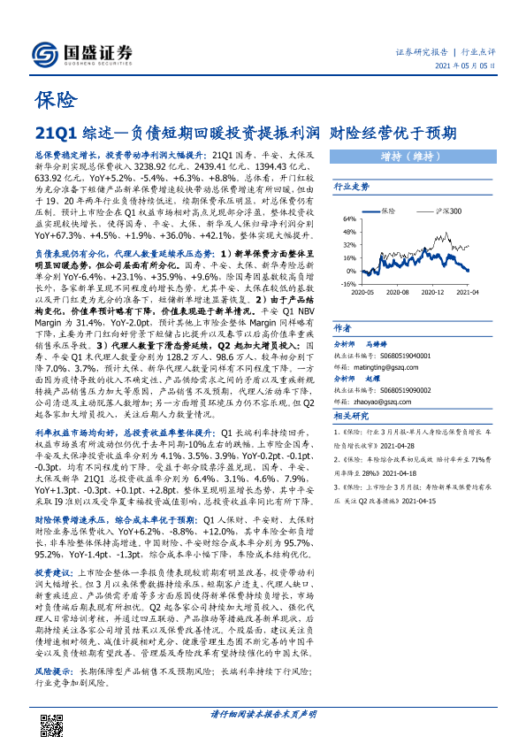 【国盛证券】【20210505】21Q1综述:负债短期回暖投资提振利润财险经营优于预期-11页