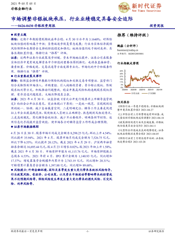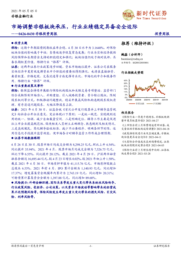 【新时代证券】【20210505】非银投资周报:市场调整非银板块承压,行业业绩稳定具备安全边际-12页