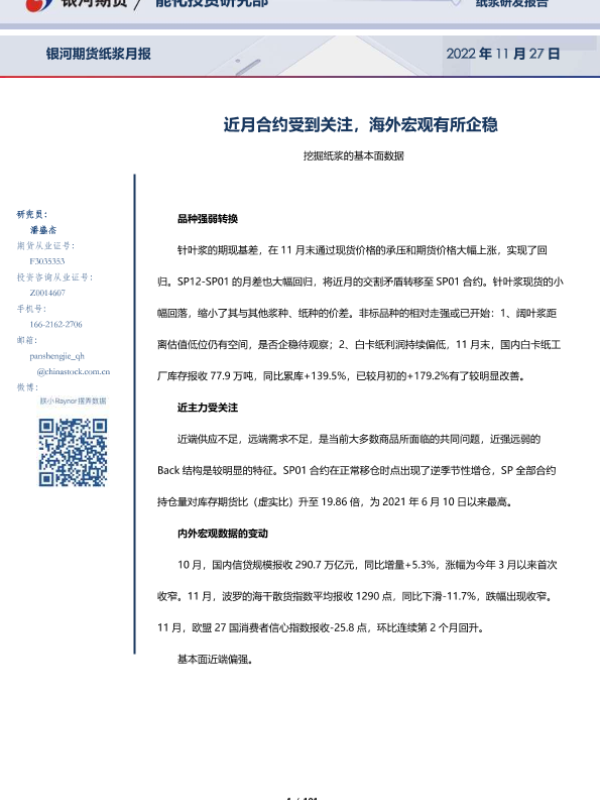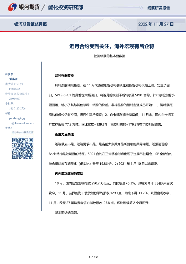 【银河期货】【20221127】纸浆月报:近月合约受到关注,海外宏观有所企稳-101页