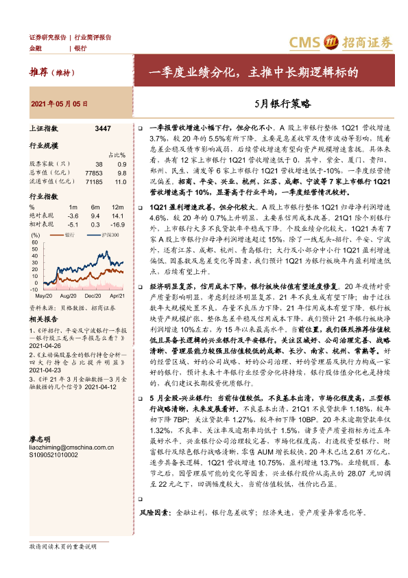 【海通证券】【20210505】5月银行策略:一季度业绩分化,主推中长期逻辑标的-4页