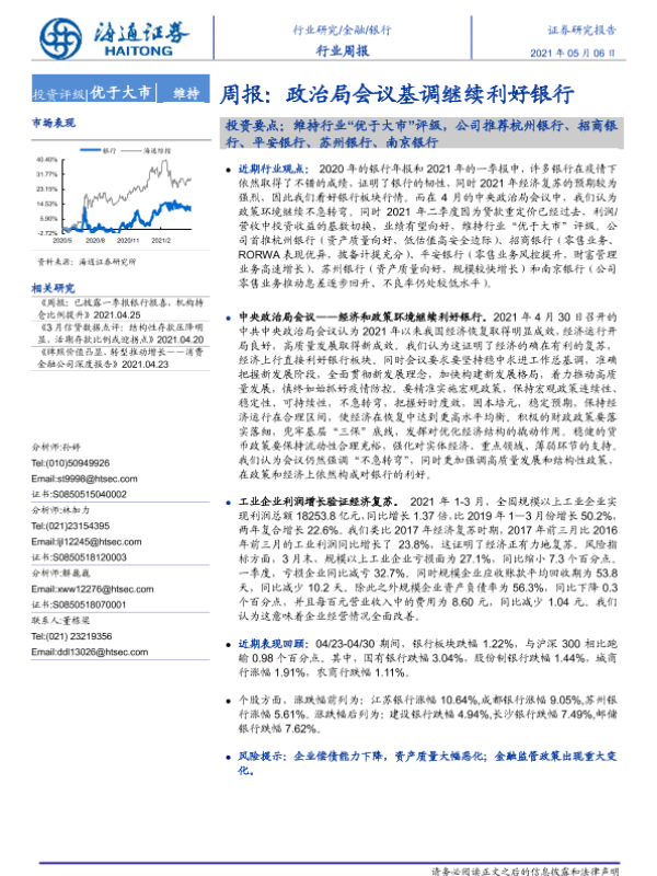 【海通证券】【20210506】银行周报:政治局会议基调继续利好银行-8页