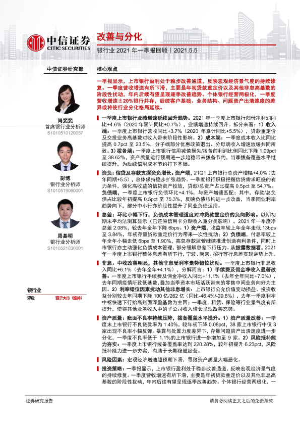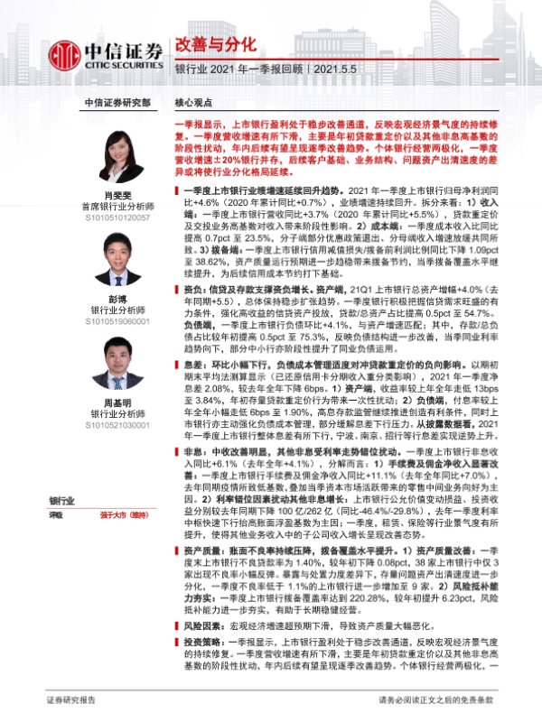 【中信证券】【20210505】银行业2021年一季报回顾:改善与分化-27页