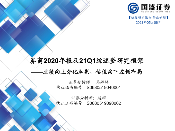 【国盛证券】【20210506】券商2020年报及21Q1综述暨研究框架:业绩向上分化加剧,估值向下左侧布局-56页