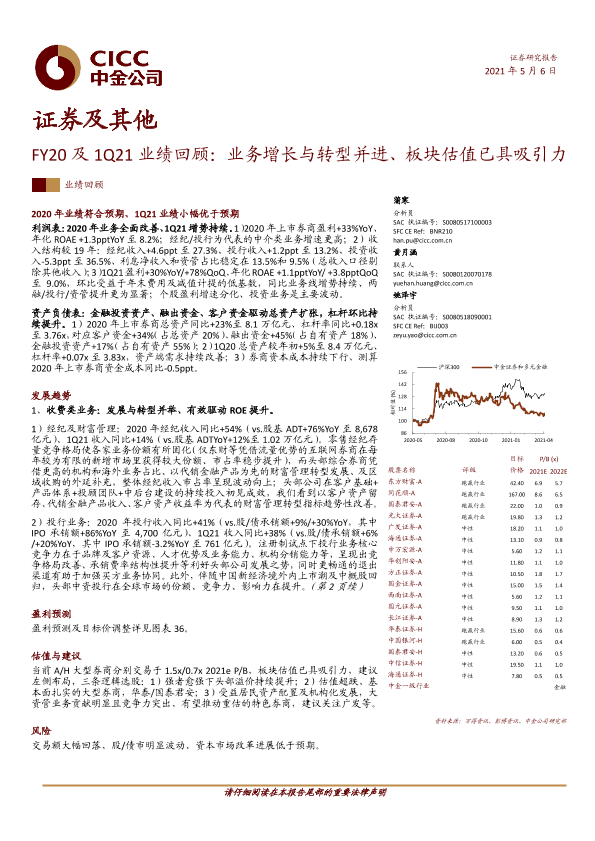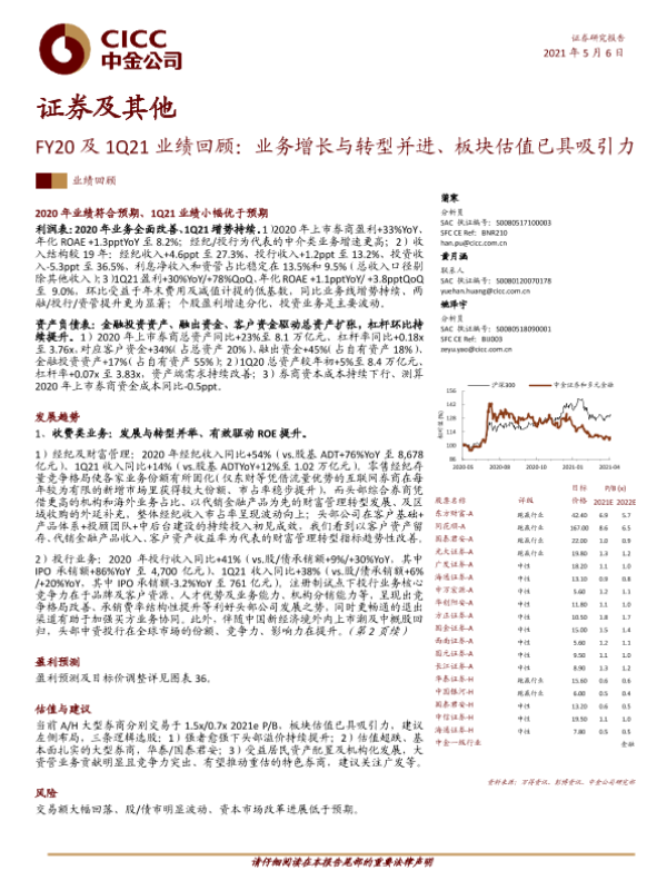 【中金公司】【20210506】FY20及1Q21业绩回顾:业务增长与转型并进、板块估值已具吸引力-19页