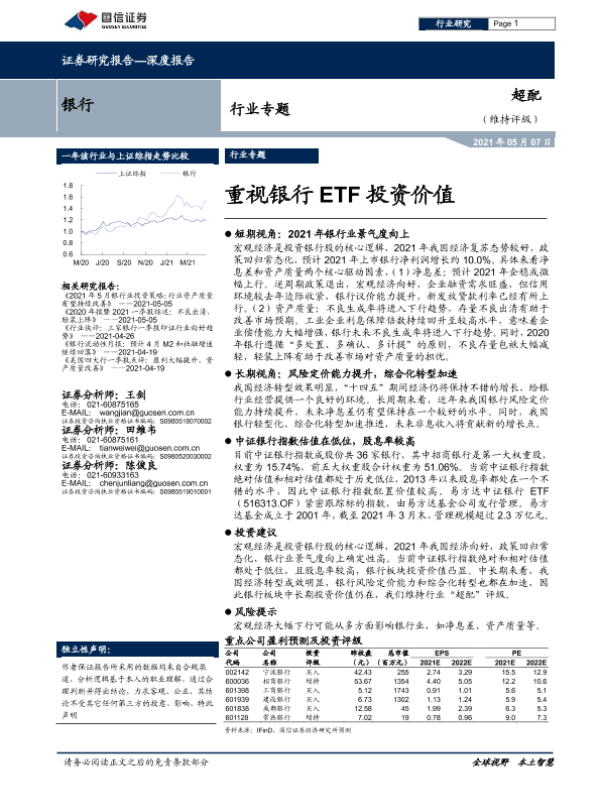 【国信证券】【20210507】重视银行ETF投资价值-19页