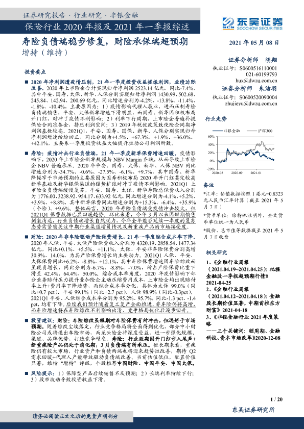 【东吴证券】【20210508】保险行业2020年报及2021年一季报综述-20页