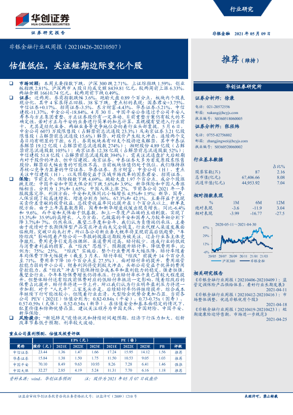 【华创证券】【20210509】非银金融行业双周报:估值低位,关注短期边际变化个股-18页