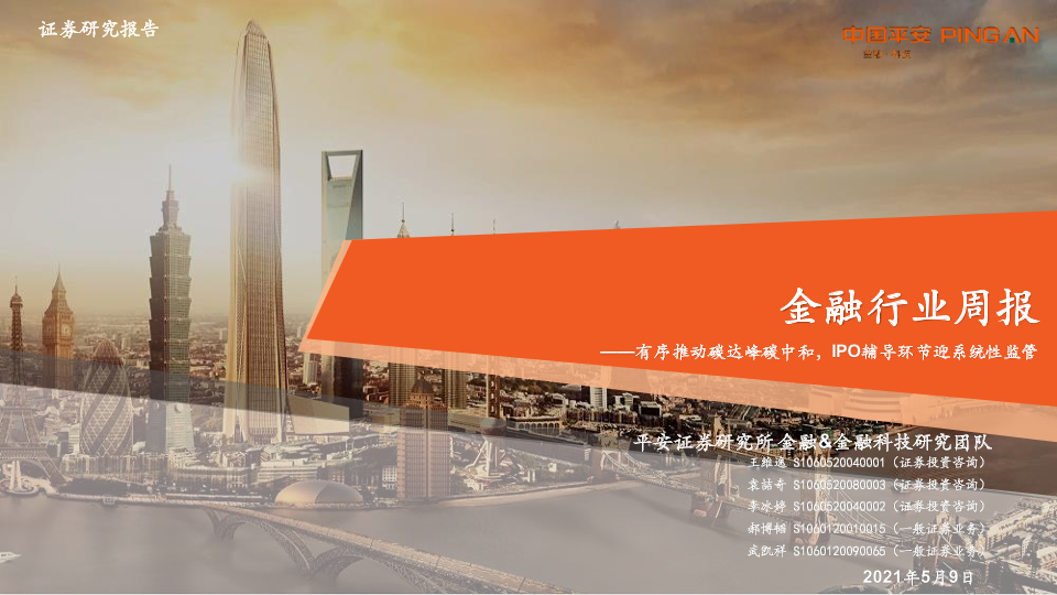 【平安证券】【20210509】金融行业周报:有序推动碳达峰碳中和,IPO辅导环节迎系统性监管-17页