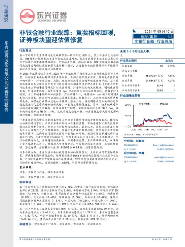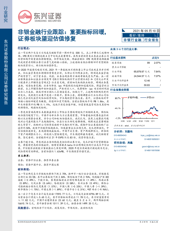 【东兴证券】【20210510】非银金融行业跟踪:重要指标回暖,证券板块望迎估值修复-8页