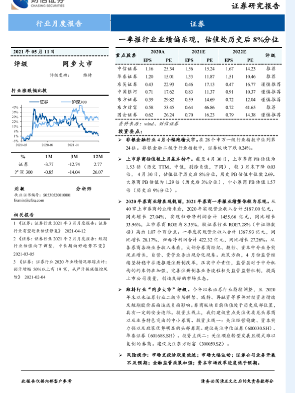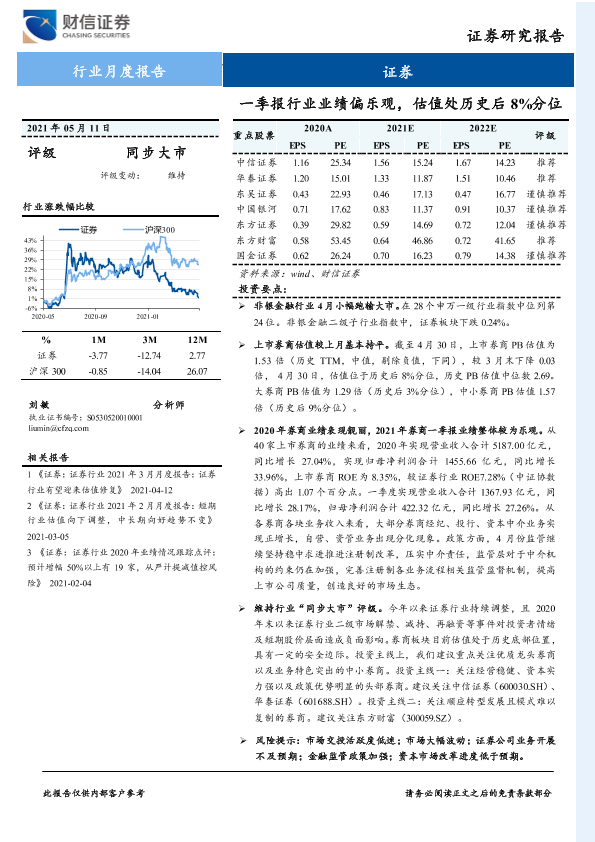 【财信证券】【20210511】证券行业月度报告:一季报行业业绩偏乐观,估值处历史后8%分位-12页