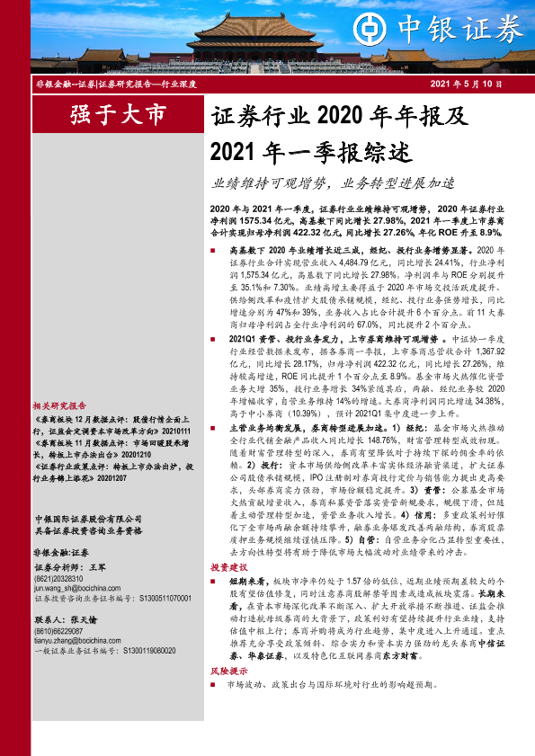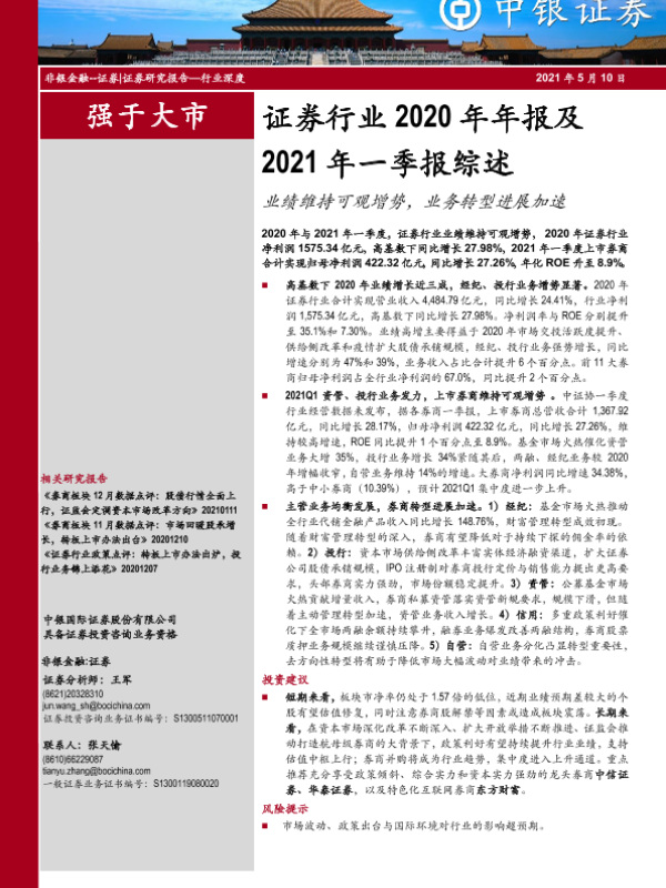 【中银证券】【20210510】证券行业2020年年报及2021年一季报综述-32页