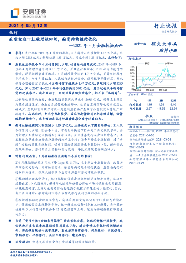 【安信证券】【20210512】银行2021年4月金融数据点评-4页