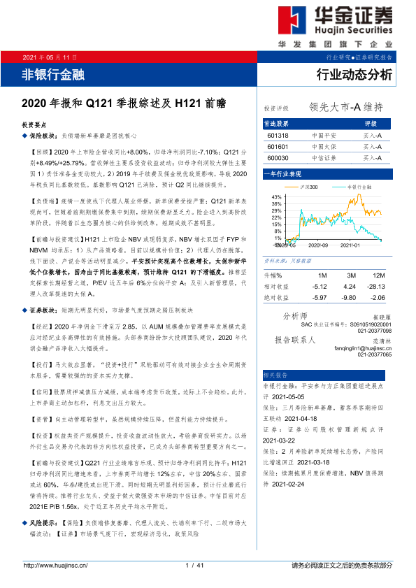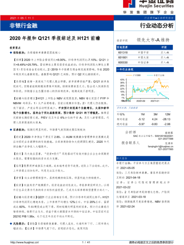 【华金证券】【20210511】非银行金融行业:2020年报和Q121季报综述及H121前瞻-41页
