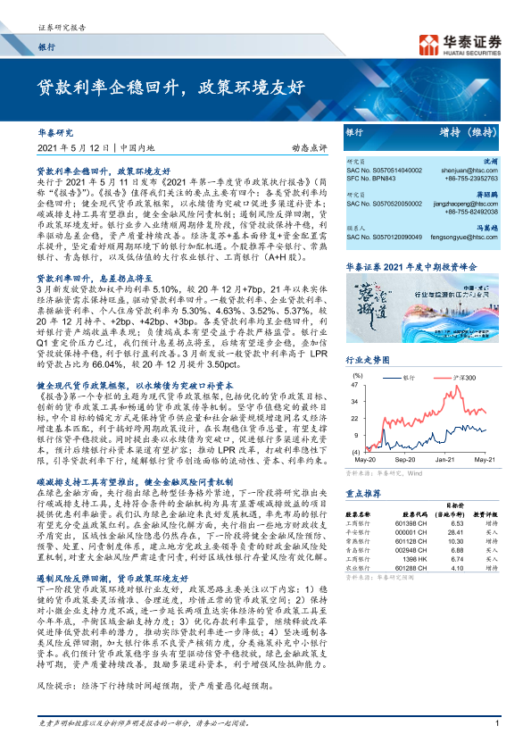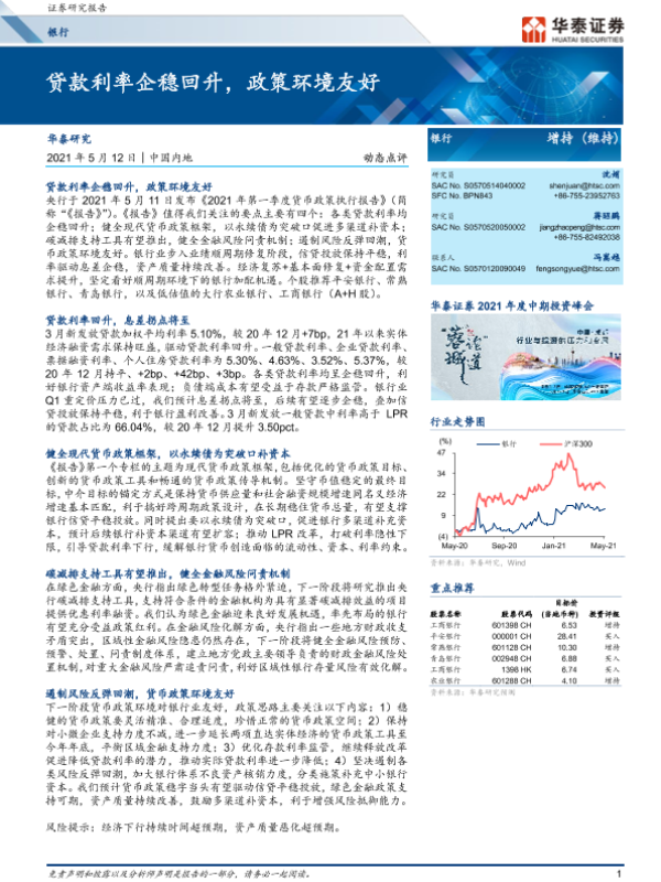 【华泰证券】【20210512】银行业动态点评:贷款利率企稳回升,政策环境友好-7页
