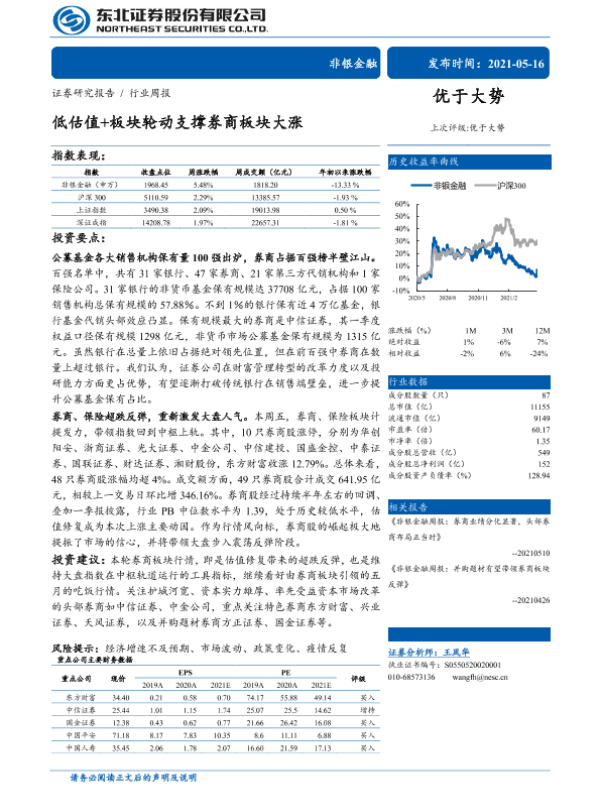 【东北证券】【20210516】低估值+板块轮动支撑券商板块大涨-24页
