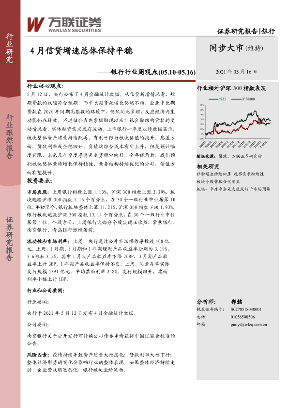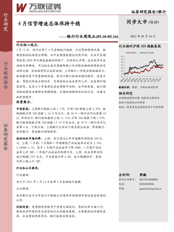 【万联证券】【20210516】4月信贷增速总体保持平稳-7页