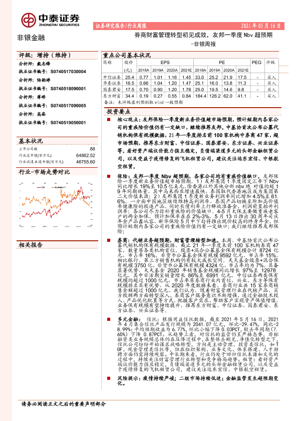 【中泰证券】【20210516】非银周报:券商财富管理转型初见成效,友邦一季度Nbv超预期-11页