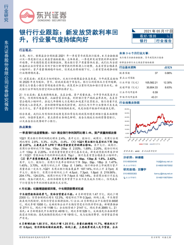 【东兴证券】【20210517】银行行业跟踪:新发放贷款利率回升,行业景气度持续向好-11页