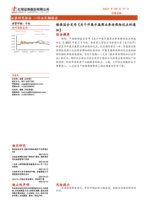 【红塔证券】【20210517】银保监会发布《关于开展专属商业养老保险试点的通知》-9页