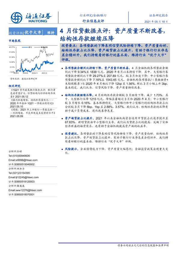 【海通证券】【20210518】4月信贷数据点评:资产质量不断改善,结构性存款继续压降-2页