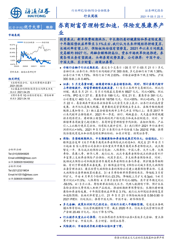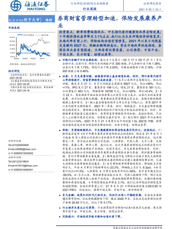 【海通证券】【20210523】综合金融服务行业周报:券商财富管理转型加速,保险发展康养产业-10页