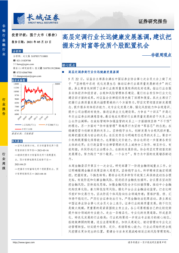 【长城证券】【20210523】非银周观点:高层定调行业长远健康发展基调,建议把握东方财富等优质个股配置机会-36页