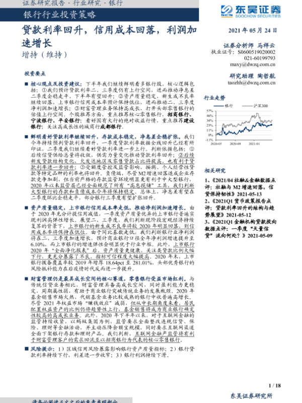 【东吴证券】【20210524】银行行业投资策略:贷款利率回升,信用成本回落,利润加速增长-18页
