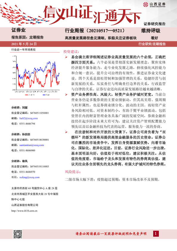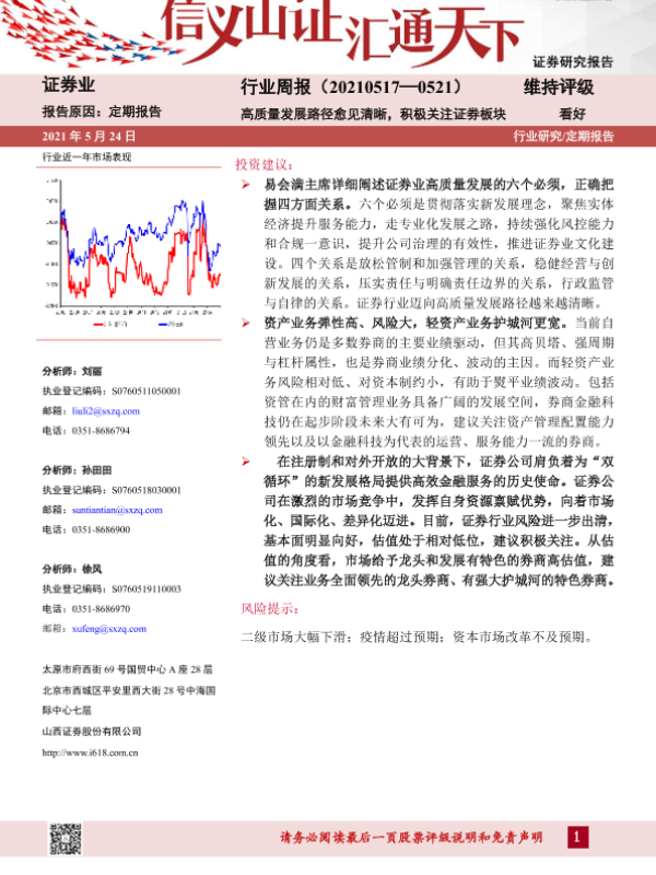 【山西证券】【20210524】证券行业周报:高质量发展路径愈见清晰,积极关注证券板块-7页
