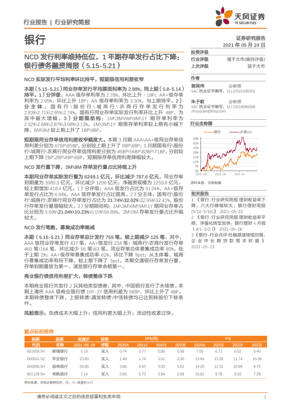 【天风证券】【20210524】NCD发行利率维持低位,1年期存单发行占比下降-14页
