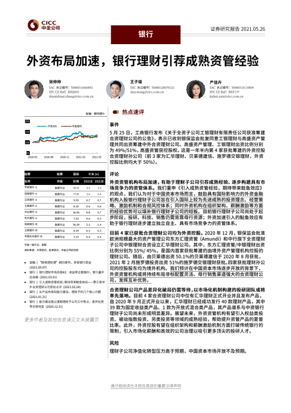【中金公司】【20210526】外资布局加速,银行理财引荐成熟资管经验-8页