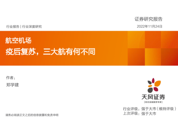 【天风证券】【20221124】航空机场行业:疫后复苏,三大航有何不同-20页
