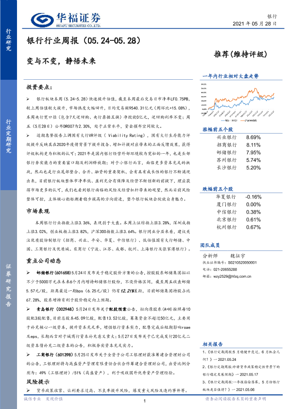 【华福证券】【20210528】银行行业周报:变与不变,静悟未来-18页
