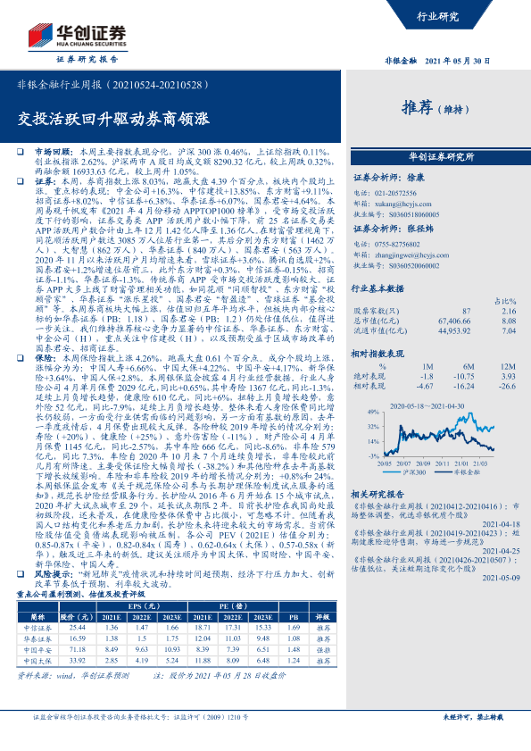 【华创证券】【20210530】非银金融行业周报:交投活跃回升驱动券商领涨-17页