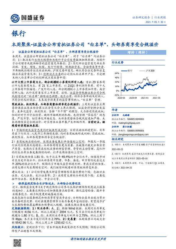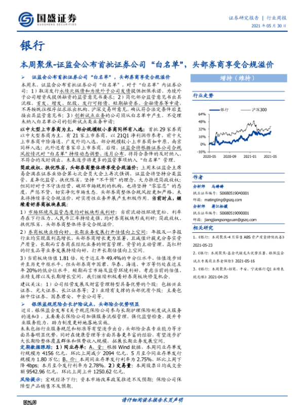 【国盛证券】【20210530】银行本周聚焦-证监会公布首批证券公司“白名单”,头部券商享受合规溢价-12页
