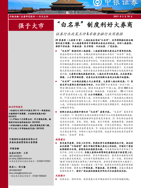 【中银证券】【20210530】证券行业政策点评&非银金融行业周数据:“白名单”制度利好大券商-8页