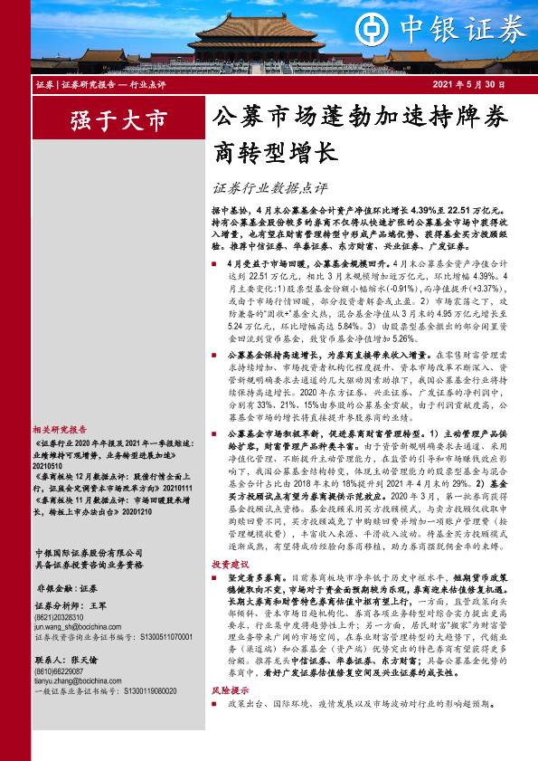 【中银证券】【20210530】证券行业数据点评:公募市场蓬勃加速持牌券商转型增长-4页