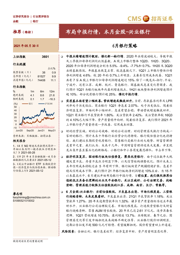 【海通证券】【20210530】6月银行策略:布局中报行情,本月金股-兴业银行-4页
