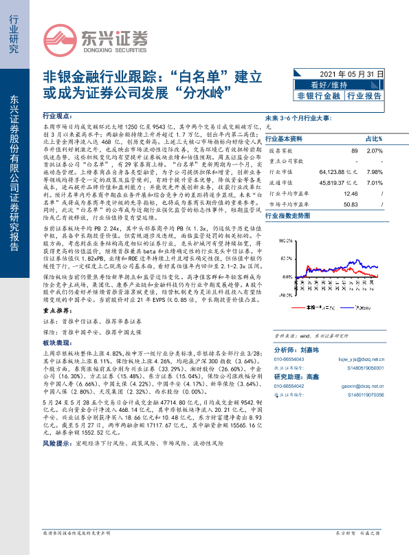 【东兴证券】【20210531】非银金融行业跟踪:“白名单”建立或成为证券公司发展“分水岭”-9页
