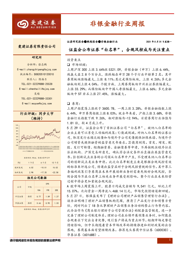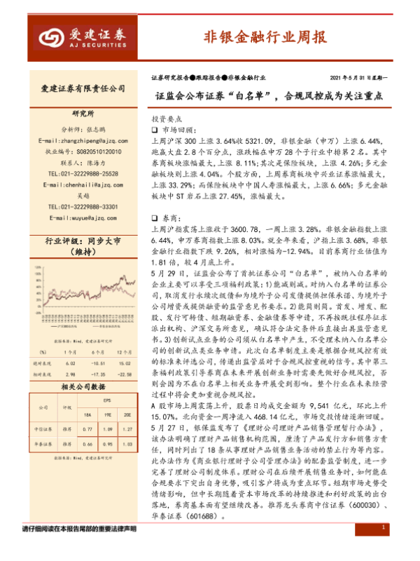 【爱建证券】【20210531】非银金融行业周报:证监会公布证券“白名单”,合规风控成为关注重点-12页