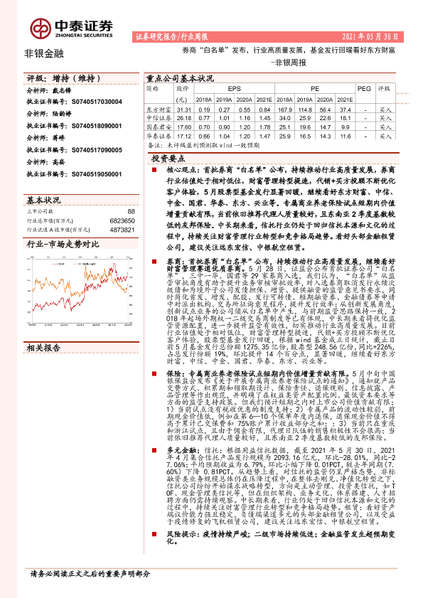 【中泰证券】【20210531】券商“白名单”发布,行业高质量发展,基金发行回暖看好东方财富-11页